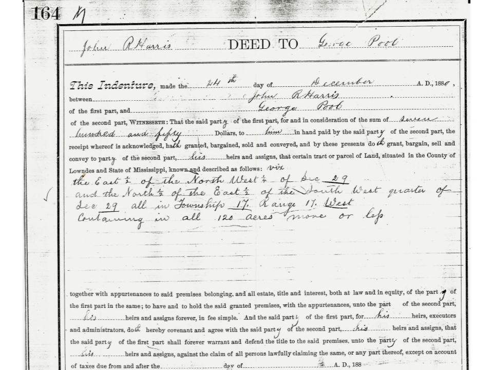 1880 – George Poole Purchases 120 Acres Less Than 15 Years After the End of “Chattel” Slavery.