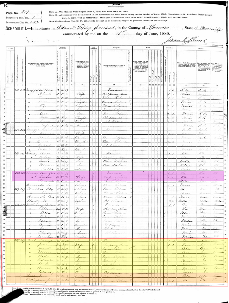 The Next Census Record in 1880, They are Recorded Residing in Lowndes Co., Mississippi.