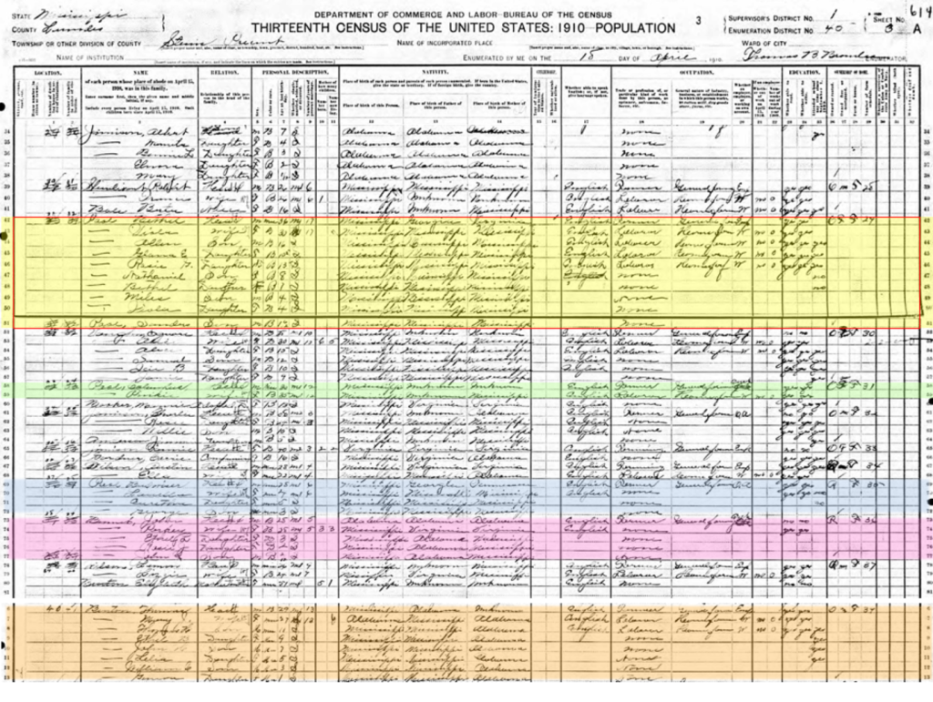 1910 Census they are Found in Steens, Lowndes Co. MS. At This Time, George Poole Has Transitioned, & Some of Family has started to Migrate off Original Homestead.